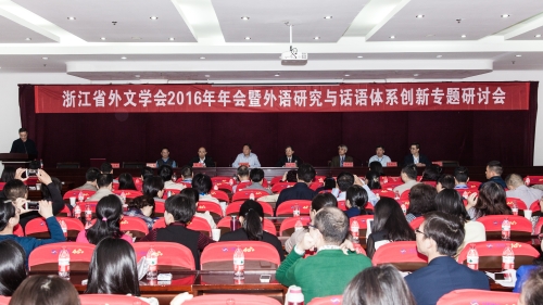10月28日—29日,由我校外国语学院承办的浙江省外文学会2016年年会暨外语研究与话语体系创新专题研讨会在临海校区学术报告厅隆重召开。省内30余所高校外国语学院的领导及学会理事单位会员代表80余人参加会议。校党委副书记金则新教授出席大会开幕式,对与会代表莅临指导表示欢迎和感谢,并介绍了学校发展建设情况;省外文学会会长殷企平教授致开幕辞。外国语学院院长刘宏照教授主持开幕式。