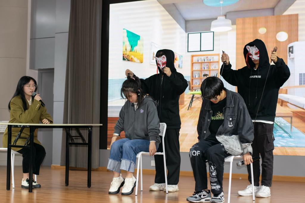 比赛开始前,沈瑜慧为观众带来了歌曲《Young and Beautiful》。随后,六个班级依次上台,带来了精彩的表演。游戏环节的设置更是活跃了现场的气氛。最后,三位评委对各节目进行了客观的评价并评选出了一、二、三等奖。其中,《拒绝内耗,直视内心》《倾听内心的声音》《渡》荣获三等奖,《此时不搏,更待何时》《医“郁”自渡》荣获二等奖,《改变》荣获一等奖。至此,外国语学院心理剧大赛圆满落幕。