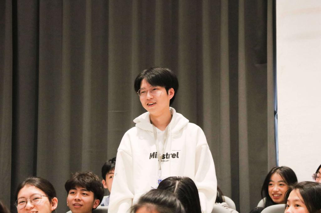 会议伊始,柯施伊宣布本次例会的主要流程,先由十五个部门的干部干事轮流进行自我介绍,其后是主席团发言。首先,钱陈航表达了对团学蓝图构建的期盼。随后,柯施伊则带领全体学生干部深入了解有关值班制度、请假制度、报销细则的注意事项。在谈及礼貌问题时,李逸鹏强调了人际交往的重要性,以小游戏的形式增强干部干事对团学细则的理解。此外,陆泽飞讲解了团学组织阶段性考核事宜及奖惩制度。例会尾声,毕雨璐以经营外国语学院微信公众号的重要性为出发点,为团学行稳致远提出了宝贵建议。