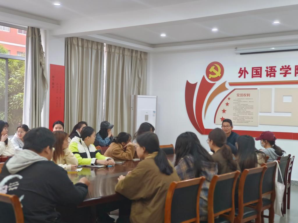 为进一步推进21级学生班级管理工作,4月6日下午,外国语学院在党员之家召开了2021级干部培训会。学院党委副书记鲁建波、辅导员王丽琼老师、各班班长、学委、团支书参会。