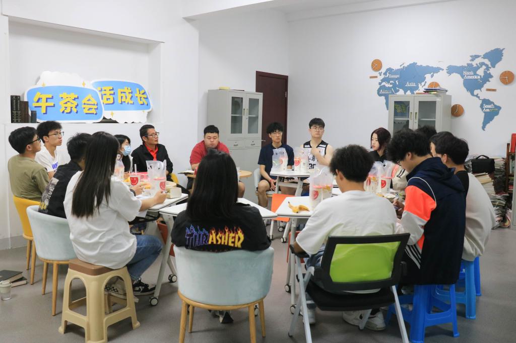 5月9日晚,外国语学院在图书室举办了以“运动伴成长”为主题的午茶会。外国语学院党委副书记鲁建波,分团委书记李莎莎,学生会轮值主席李逸鹏,文体部干部潘李邦受邀出席,各运动队负责人参加。