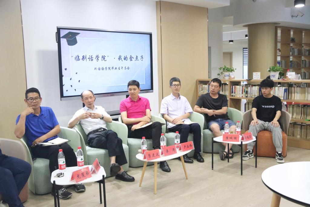 四年时光匆匆逝,又是一年毕业时。6月4日下午,外国语学院在广文书院多功能厅举办了以“临别话学院:我的金点子”为主题的第二十五期午茶会。本次午茶会由外国语学院党委书记李涛,副院长卢立伟,党委副书记鲁建波,党委委员崔瑞国、马俊周,党委委员、学工办主任房佳婕,辅导员龙莲弟出席,外国语学院学生董涵沣主持,部分毕业生参加。