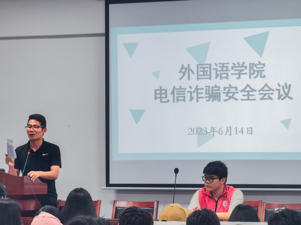 为进一步增强师生反诈防诈意识,保护师生财产安全,推进平安校园建设,6月14日,外国语学院联合校保卫处举办了防范电信诈骗专题讲座。校安全宣讲团讲师王凯伦担任宣讲员,外国语学院师生共130余人参加了本次活动。