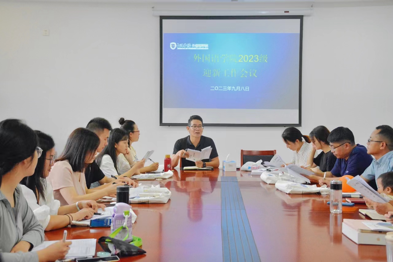 为确保迎新工作有序开展,9月8日下午,外国语学院在4102会议室召开2023级迎新工作会议。会议由党委副书记鲁建波主持,2023级新生辅导员龙莲弟以及全体新生班主任、班助等出席会议。