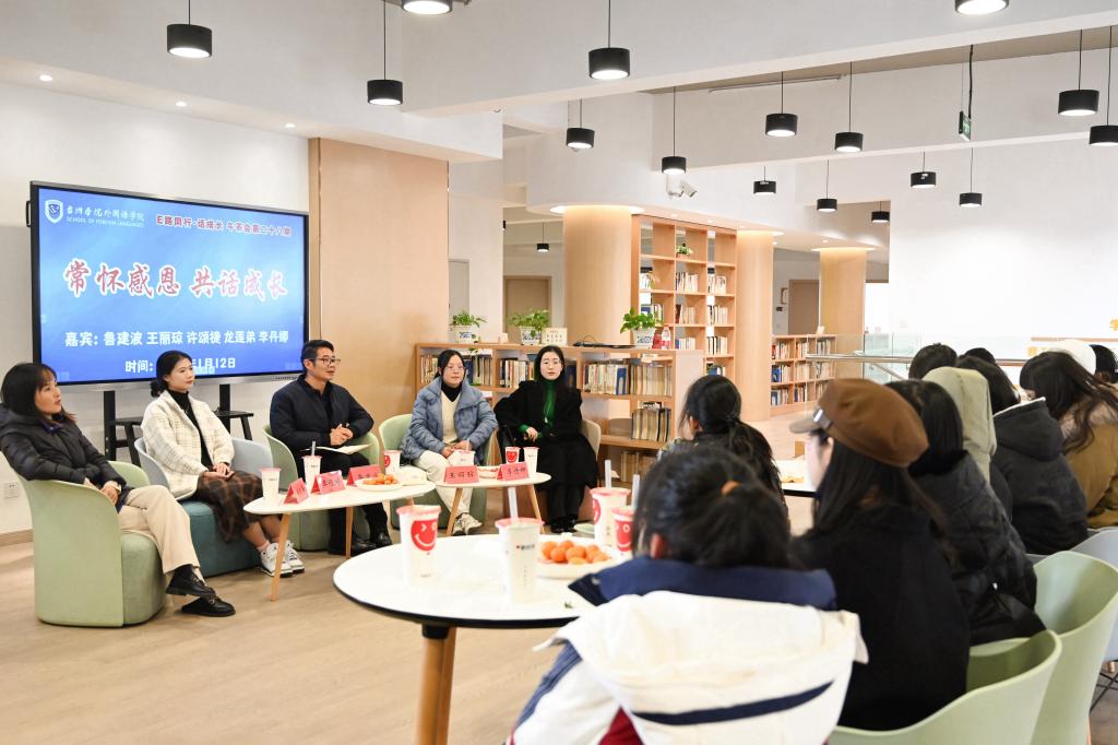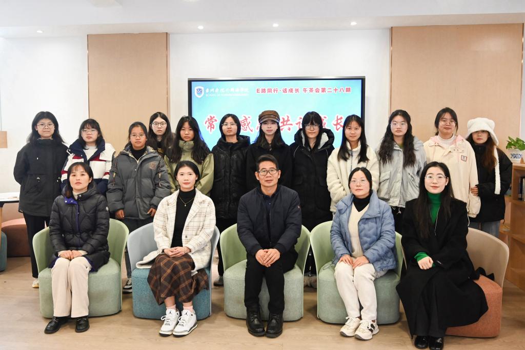 1月12日,外国语学院举办主题为“常怀感恩,共话成长”的暖心活动暨第二十八期午茶会。外国语学院党委副书记鲁建波、辅导员龙莲弟、李丹娜、20级商务英语2班梁钰婷和部分学生代表参加,学工办主任王丽琼主持。