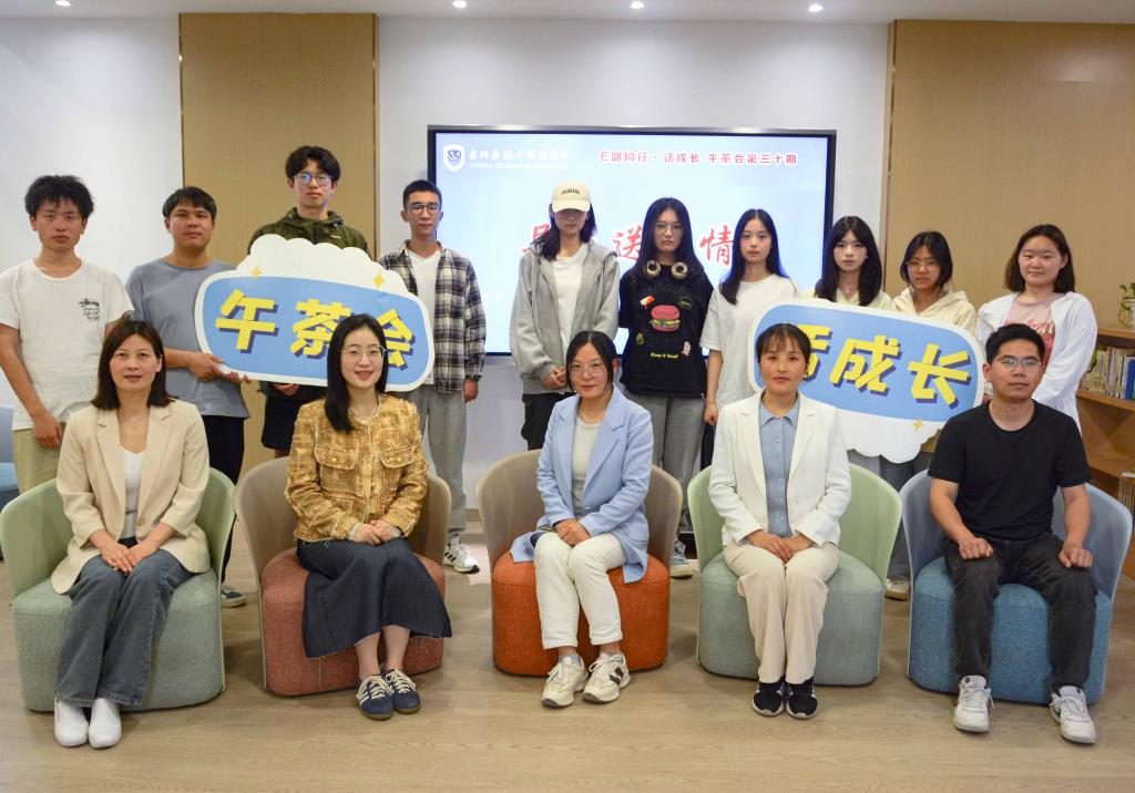 4月25日下午,外国语学院在广文书院举办主题为“异乡送温情”的第三十期午茶会。本次午茶会由外国语学院学工办主任王丽琼、辅导员许颂婕和龙莲弟以及23英语1班班主任方国莲出席,部分23级省外同学参加。