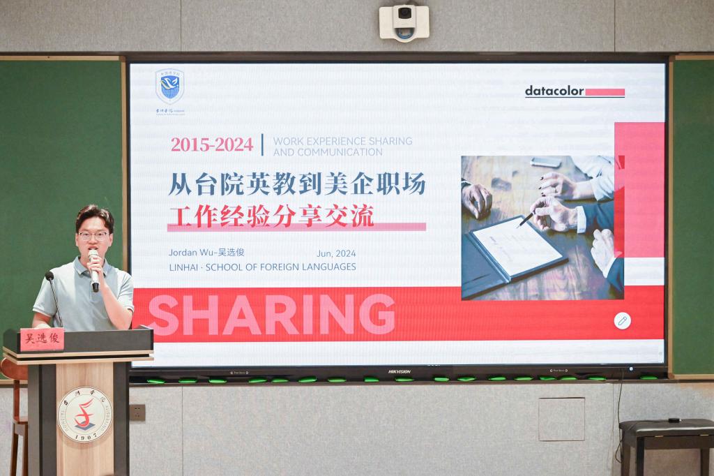 6月7日下午,外国语学院于A6教室举办以“点亮职业灯塔”为主题的优秀校友分享会。本次活动由外国语教师吴烨洲、现任公司外贸经理的应诗婷、现于美企工作的吴选俊、现任携程国际版Associate Marketing SEO Manager的李可心主讲,外国语学院部分学生参加。