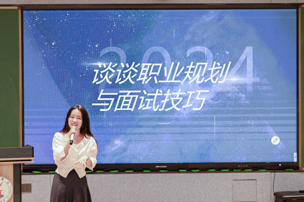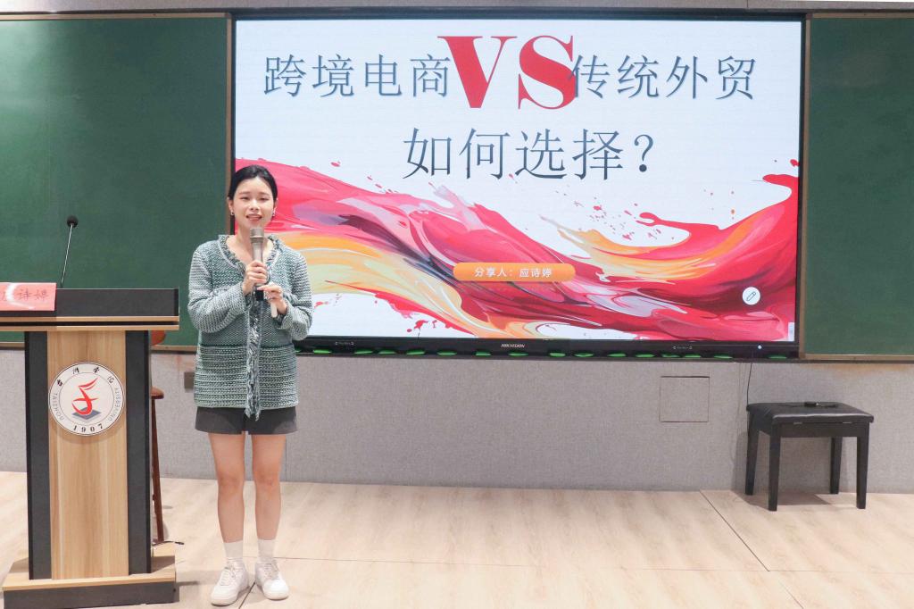活动伊始,吴烨洲分享外贸流程和外贸从业经历。她认为外语能力非常重要,并鼓励同学们在校多学习多积累。她强调,无论是商务谈判,还是处理文件和合同,外语能力都是关键。随后,应诗婷分享跨境电商和传统外贸的经验;指出要想在跨境电商领域取得成功,必须具备市场洞察力、应变能力以及国际经验。她认为失败是成功的必经之路,鼓励同学们勇于尝试和挑战。吴选俊则介绍了美企的职业环境,能力要求,职业晋升等。他强调,大家在校应夯实英语基础,注重跨文化能力的培养。他用自己的亲身经历说明,虽然我们起点不高,但只要自身足够努力,也可以跟985,211的高校毕业生同台竞技。最后,李可心从大厂人力资源角度出发,强调英语+能力的重要性,对职业规划,职场适应等做介绍。她鼓励同学们看到更多可能性,认为英语是打开世界的工具,职业的未来有无限可能。