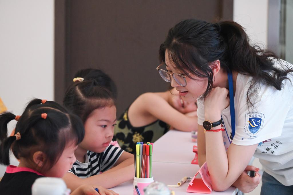 爱农思政课堂上实践队成员与小朋友的互动