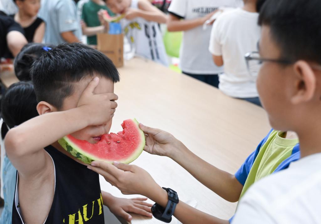 为鼓励孩子积极参与运动,实践队成员举办趣味运动会,与孩子一同探寻运动起来的快乐。社区游园,知识大比拼。社区里孩子们动起脚步,穿梭于各个打卡点。活动寓教于乐,把社区知识藏进游园里。清凉一夏,西瓜大赛。孩子们跃跃欲试,先有西瓜猜重,观外表细端详;又有蒙眼吃瓜,趣升级新花样;再有吃瓜比拼,笑声满堂回荡。Fun肆运动旨在让孩子放下电子产品,学习知识之余离开课桌,为孩子提供了锻炼身体的机会,引导孩子积极参与体育活动,增加体力活动的时间,改善身体状况。