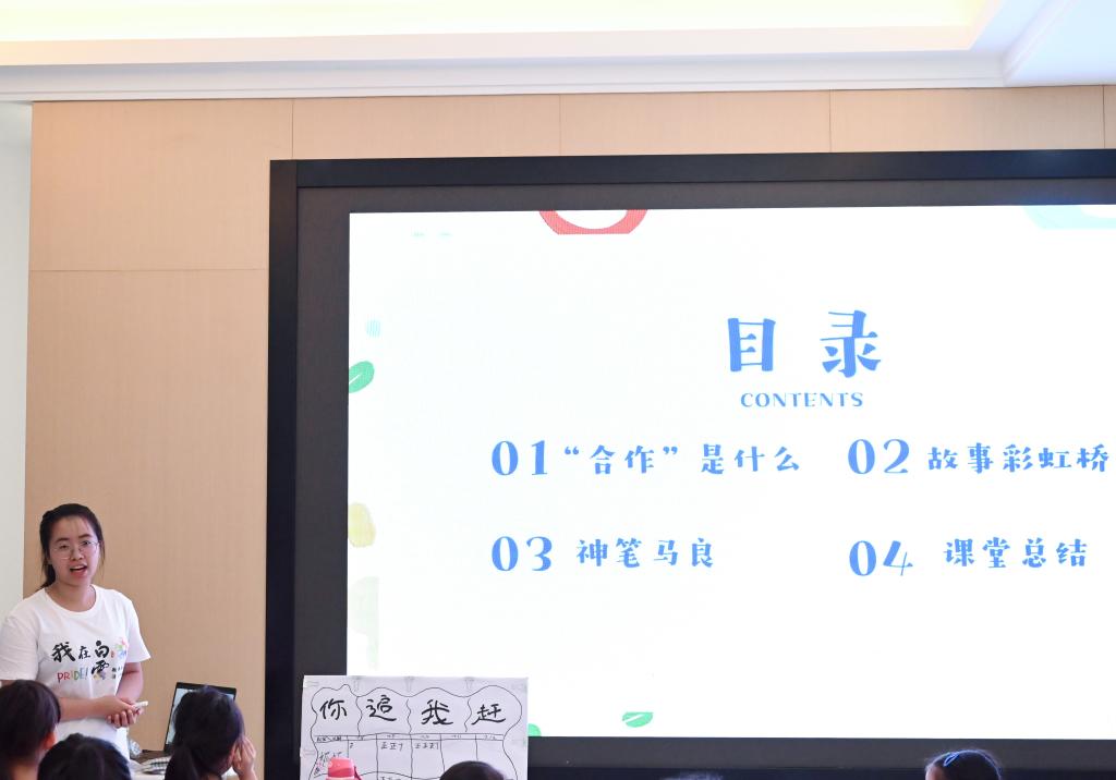 尺有所短,寸有所长,合作则是实现共赢的重要桥梁,引领我们携手走向美好的未来。本次课程以团队协作为核心,旨在让孩子深入了解并体验团队合作的重要性,培育其团队协作的能力。实践队的队员通过深入讲解合作内涵来强调团队合作精神,并运用以合作为主题的奥斯卡短片来凸显合作的重要性。神笔马良游戏将课程推向了高潮,孩子们组队合作完成写字任务。实践出真知,在游戏中孩子们即时体会团队合作的重要性,提升了合作意识及沟通技巧。实践队成员以此鼓励孩子们在日常生活中积极与他人合作,以培养自身的团队协作能力。