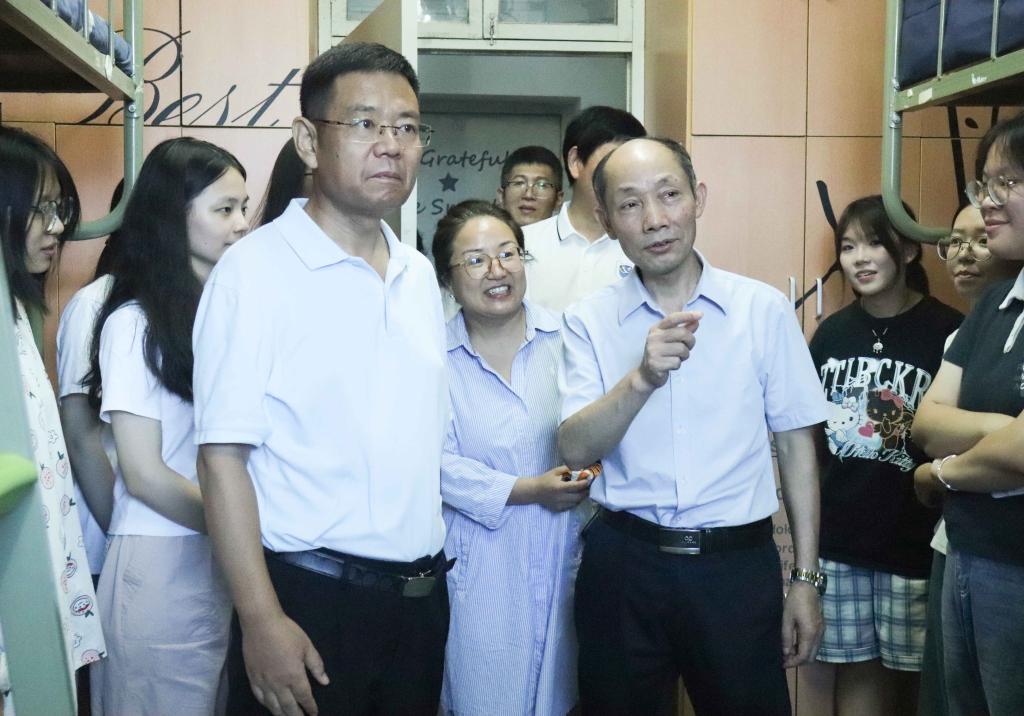 为了解2024级新生报到入学和寝室生活情况,帮助他们更快融入大学新环境,9月7日下午,外国语学院开展了2024级走访新生寝室活动。外国语学院院长王刚、党委书记李涛、其他班子成员以及全体辅导员、新生班主任深入新生寝室。
