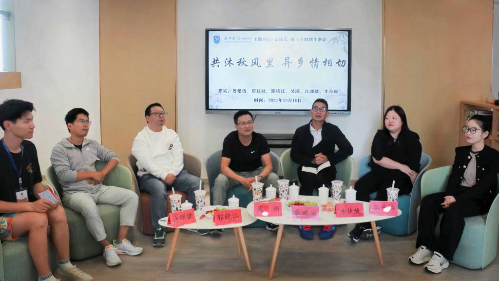10月12日下午,外国语学院于广文书院二楼举办了主题为“共沐秋风里,异乡情真切”的午茶会。本次午茶会邀请外国语学院党委副书记鲁建波,党委委员组织员房佳婕,教务办主任郭晓江,新生辅导员许颂捷,分团委书记李丹娜,班主任吴澜出席,24级30位来自省外的新生参加。