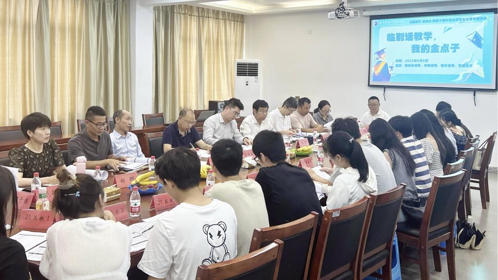 为提高教学工作质量,促进学院持续高质量发展,外国语学院于6月5日下午在4102会议室举办“临别话教学,我的金点子”为主题的第四十期茶话会暨毕业生教学座谈会。学校教务处副处长黄江峰、学校督导吴仲敏、学院领导班子、各系办主任、学院督导及2025届毕业生代表出席,外国语学院副书记鲁建波、副院长崔瑞国主持。