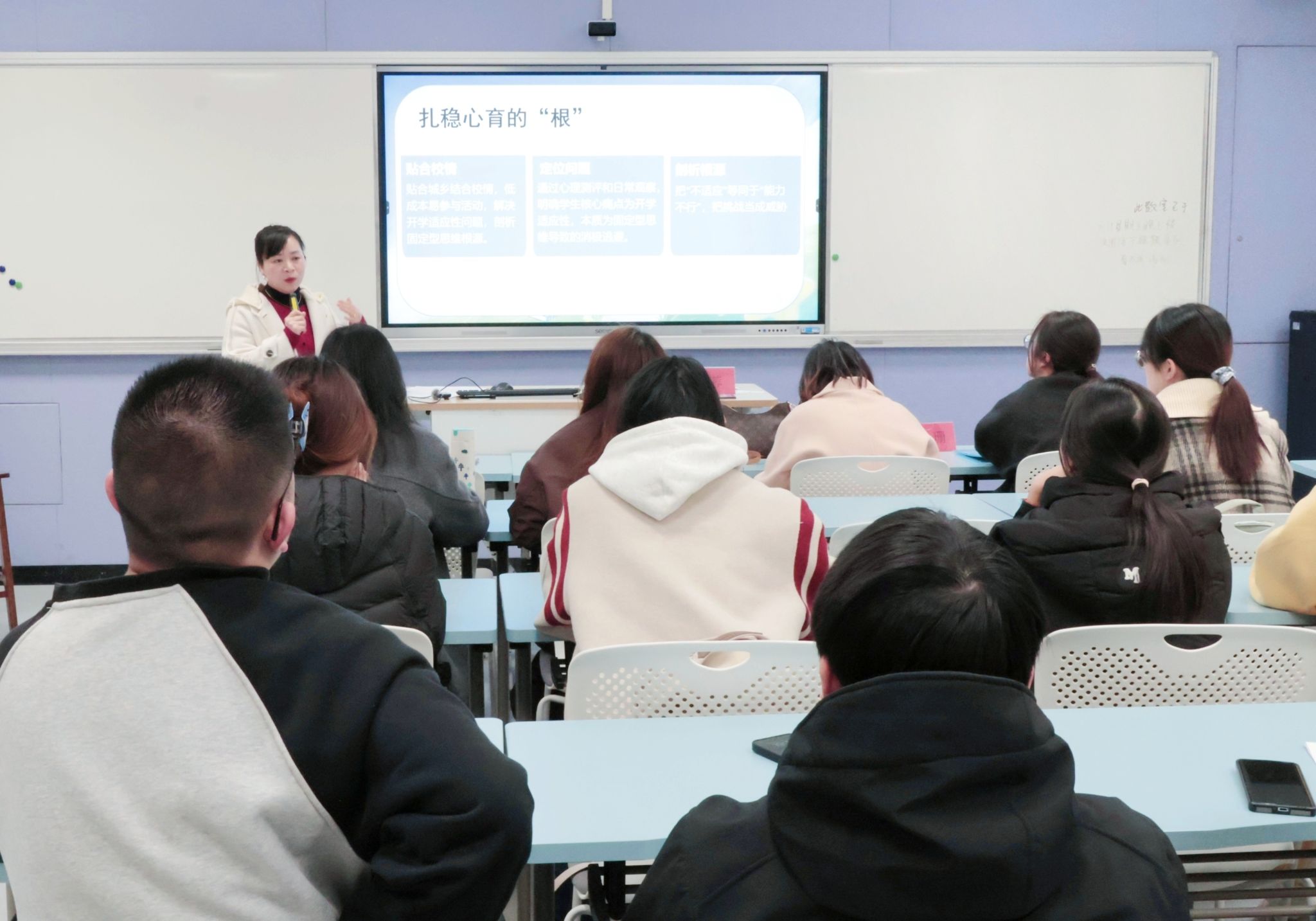 三位老师分别围绕教育教学、班级管理与学生成长三方面开展专题分享。首先,林蓉以“外塑筑基,内驱提质”为核心,提出共定班规、放权管理、家校协同的三阶德育路径。其后,吴珊围绕师范生成长展开,结合自身入职经历,从入职准备、专业能力提升等方面,系统讲解了英语核心教学技能。最后,许新星以“从0到1做心育”为主题,分享学生心理活动策划方案:立足心育本源主题、构建成长闭环、进阶优质方案。
