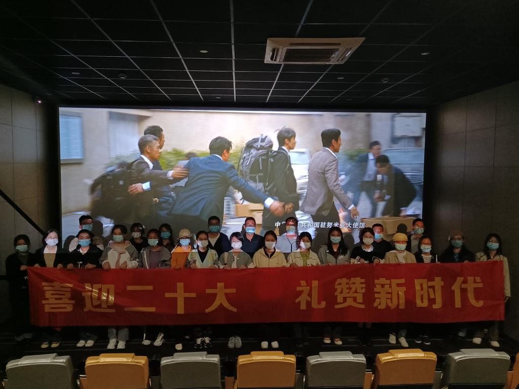 该影片以外交官撤侨事件为背景,讲述了努米亚共和国战乱,外交官受命撤侨,任务结束后却得知还有部分同胞被困,放弃回家之路,逆行踏入战区,带领同胞走出一条回家之路。观影过程中,党员同志们为外交官不畏艰险、敢于牺牲、英勇顽强的拼搏精神所鼓舞。看着外交官将中国护照举起穿过叛军分子,无不感到骄傲与自豪。听到“我们带你们回家”的话语,大家无不热泪盈眶,越发感觉党与祖国的强大。