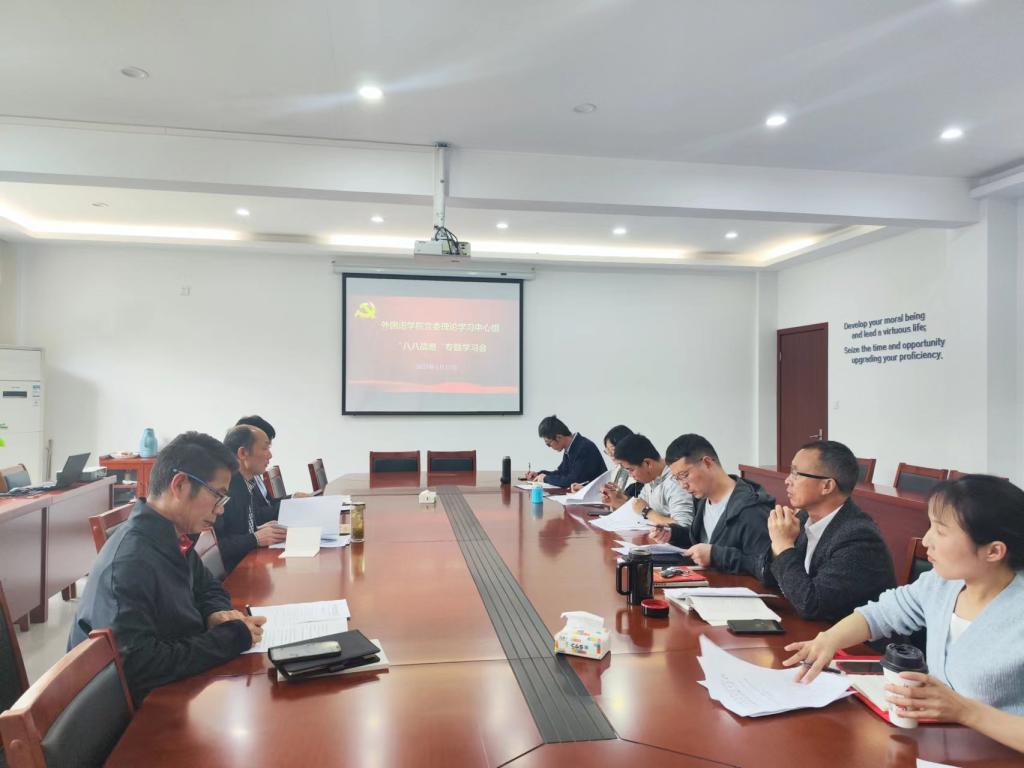 5月12日,外国语学院党委理论学习中心组召开“八八战略”专题学习会,学院领导班子、党委委员、教工及学生党支部书记参加会议,学院党委书记李涛主持会议。