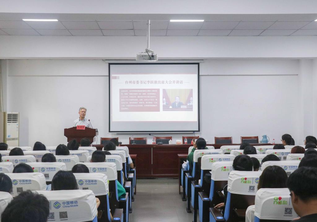 6月13日,副校长、党委委员杨健国到外国语学院宣讲台州学院第四次党代会精神,学院党政班子、师生党员代表及业余党校学员参加宣讲会,学院党委书记李涛主持会议。