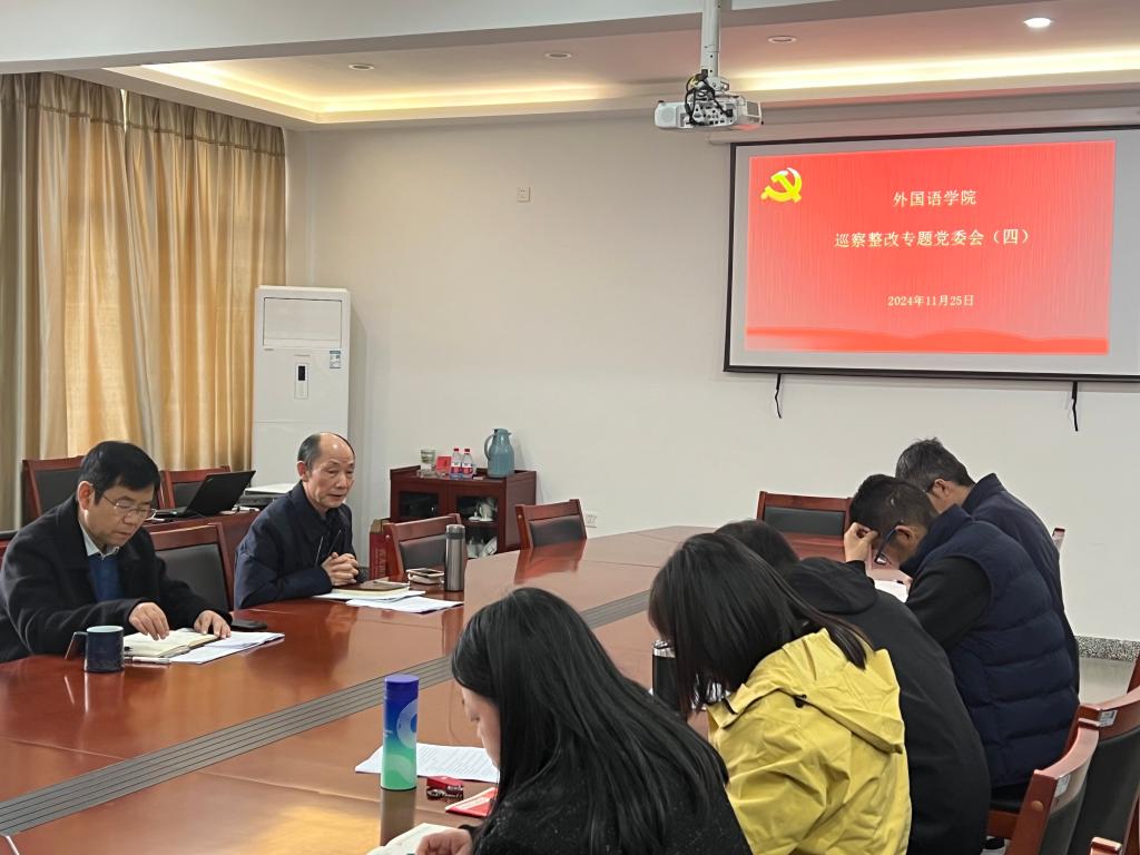 为进一步压实压紧巡察整改责任,推动巡察反馈问题整改落实落细、见行见效,切实做好巡察“后半篇文章”,11月25日下午,外国语学院召开第四次巡察整改专题党委会,学院党政班子及党委委员参会,会议由学院党委书记李涛主持