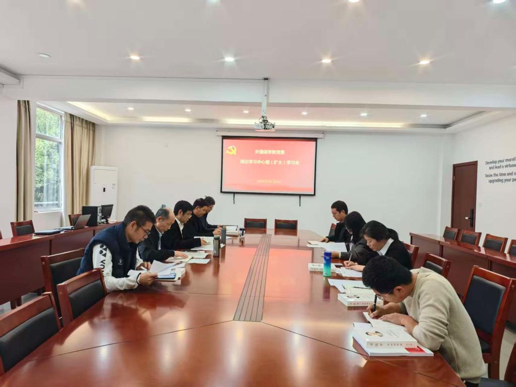 11月6日,外国语学院召开党委理论学习中心组扩大学习会,围绕党的二十届四中全会精神、《习近平谈治国理政》第五卷开展学习研讨。学院党政班子成员、党委委员、党支部书记参加会议。学院党委书记李涛主持会议并领学。