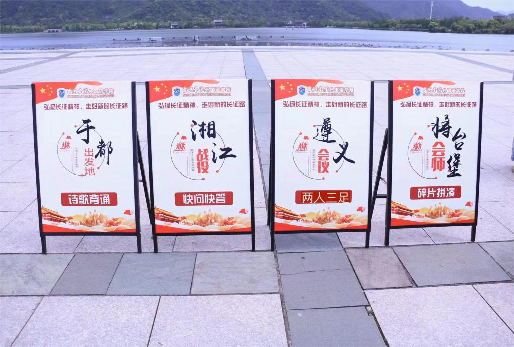学生党员从灵湖广场出发,徒步5公里,沿途经过“于都——长征集结地”、“兴安——湘江战役”、“遵义——长征中的转折点”,最后到达“将台堡——长征最后会师地”,勇闯“诗歌背诵”、“快问快答”、“两人三足”、“碎片拼凑”四个关卡。活动中,学生党员重温长征历史,从中感悟团结就是力量,百折不挠勇往直前的精神,进一步增强了学生党员们爱国主义和集体主义精神,坚定了对中国特色社会主义事业的信念。