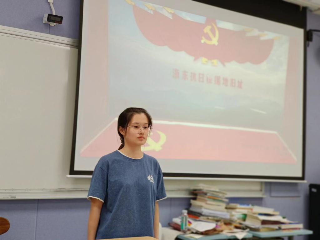 2023年10月19日下午,外国语学院学生第二党支部于3101教室举办了一场“启航·追溯红色足迹”主题党日活动。该活动旨在组织学生党员深入研读党的二十大报告,并通过分享暑期实地走访红色基地故事等方式,检验理论学习的实效。活动中,杜晗同学前往鹤壁市烈士陵园,缅怀革命先烈。陈丽颖前往庆元县革命烈士陵园,向英灵致敬。高梦倩同学前往余姚市浙东抗日根据地旧址,加深了对革命历史的认识。金子烨同学参观江山岛登陆战纪念馆,虔诚地缅怀烈士的丰功伟绩。这些参观红色基地的经历,加深了学生党员们对民族英雄的敬意,同时也加深了对党的理论学习的认识和体验。