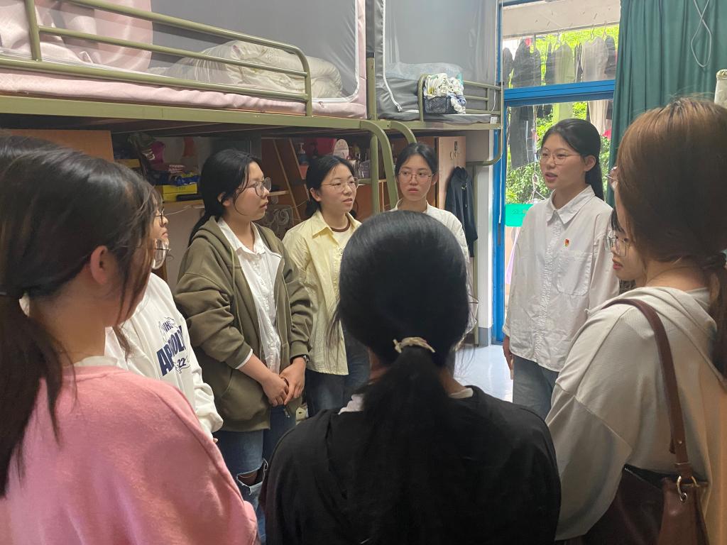 学生党员结合学校近期工作与同学们亲切交流,对学生宿舍进行了安全隐患排查,并认真检查了宿舍内的电器设备、消防设施等,向同学们宣传了消防安全知识及防诈骗知识,提高了同学们的安全文明意识。此外还就大一大二同学关心的党员发展中遇到的问题,进行了“一对一”的答疑解惑。通过细致讲解,帮助同学们更好的了解党的性质和宗旨,端正入党动机。