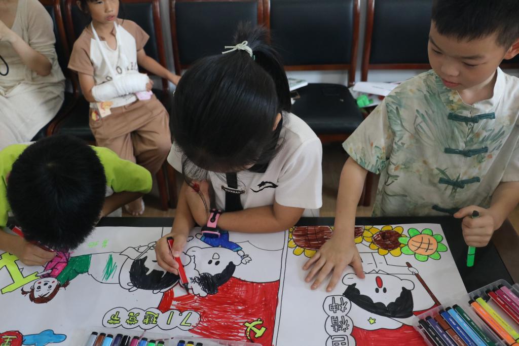 活动尾声,孩子们围在画布前,用五彩画笔尽情挥洒创意。他们用稚嫩却真挚的笔触,描绘出心中的美好世界,表达对祖国的热爱以及对未来的憧憬。缤纷色彩交织间,不仅是童真创造力的绽放,更藏着对祖国最纯粹的祝福。