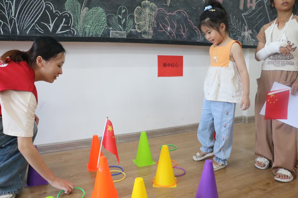 为庆祝中国共产党成立104周年,7月3日下午,外国语学院学生第二党支部“红韵青声”宣讲团深入摆酒营社区,开展了一场别开生面的党史教育活动。通过“党史课堂+沉浸式红色体验”的创新形式,让孩子们在趣味互动中感受红色历史。当清脆童声与党史故事共鸣,当趣味游戏与红色记忆交融,一场别开生面的“红色育苗”行动在夏日的暖阳中启幕。