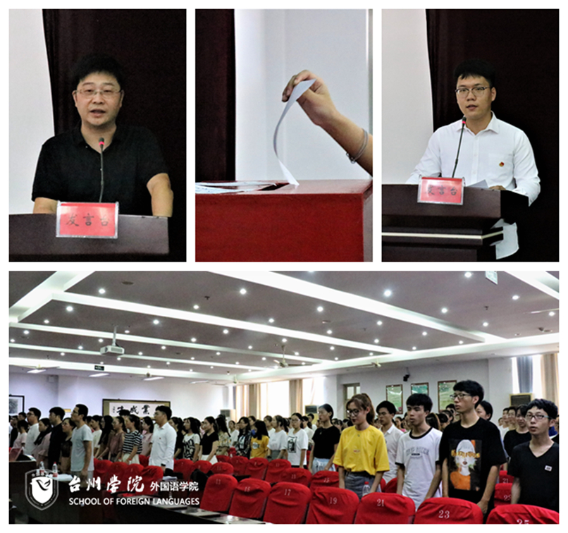 外国语学院第十五届学生会主席王俊龙代表上一届团学组织作大会工作报告。报告回顾了一年以来,学院团学组织在思政建设、新闻宣传、学业成长、文体活动、志愿服务、社团管理、文明寝室建设、内部机构优化等各项工作取得的成绩,分析了学院团学工作存在的不足,号召学院全体学生干部坚持初心,勇于创新,用平时的言行行动践行学生干部的先锋模范作用。