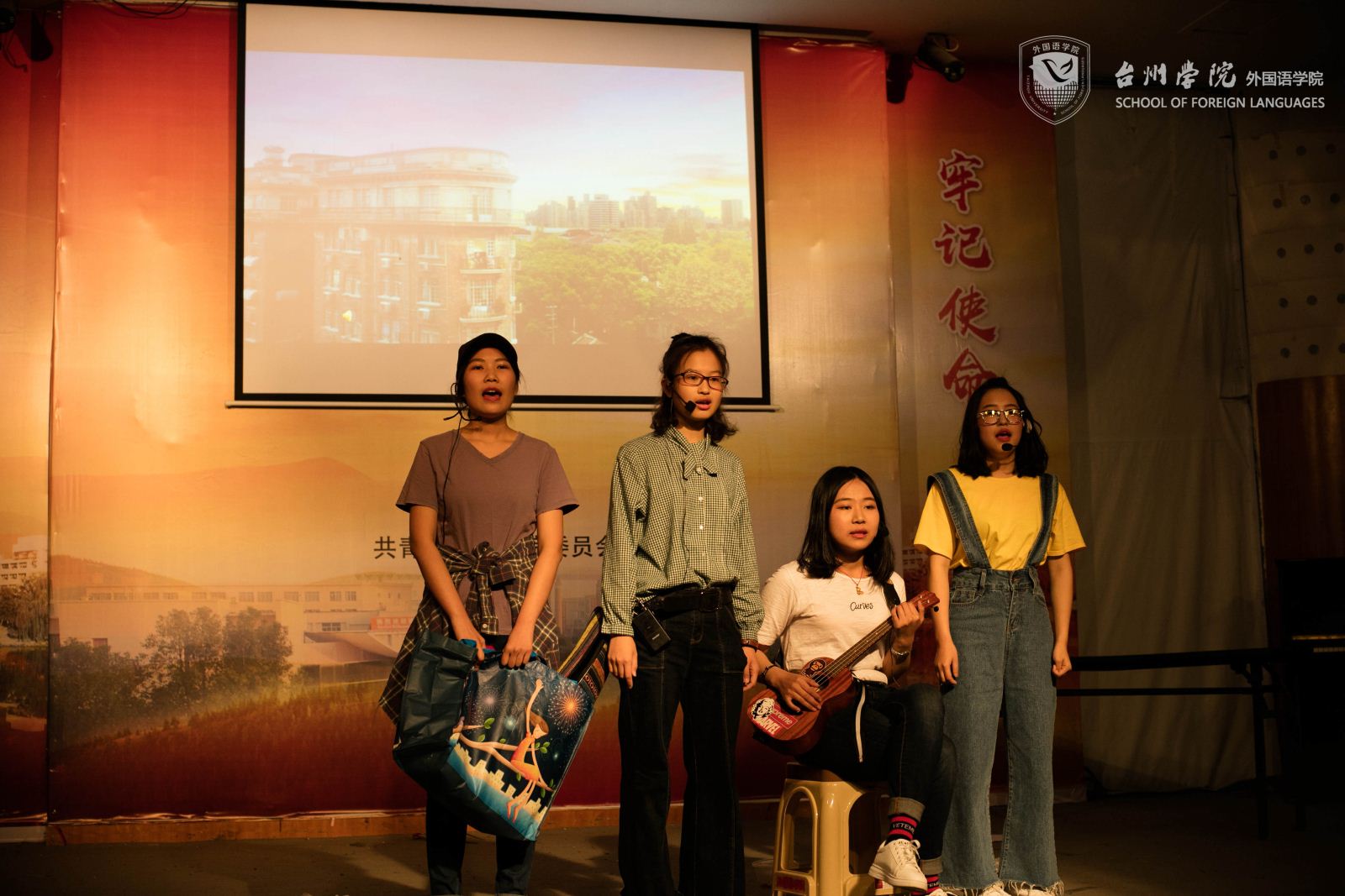 4月8日晚,外国语学院2018年度团支部文化比赛在临海校区大学生活动中心举行。学院党总支副书记金宏伟,浙江省曲艺家协会会员、临海曲协主席、文化馆副馆长刘一军老师和2017级班主任、学院辅导员,以及在场的同学一起观看了演出。