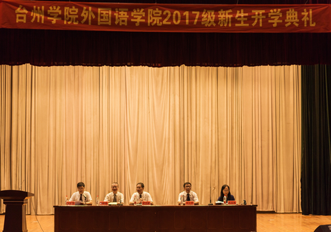 9月11日晚,外国语学院在临海校区影剧院举行2017级新生开学典礼。学院领导刘宏照、赵校民、陶岳炼、刘富丽出席,学院党总支副书记金宏伟主持。