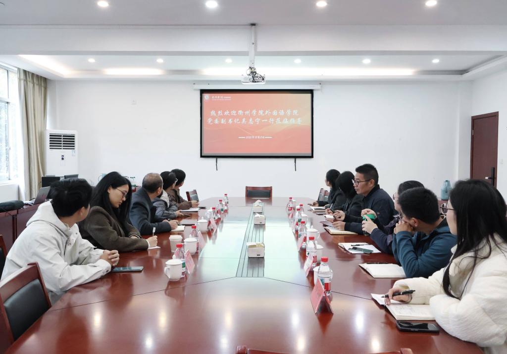 12月8日上午,衢州学院外国语学院党委副书记吴志宁一行来校考察交流,外国语学院党委副书记鲁建波、党委委员房佳婕,全体辅导员参加了此次交流会。