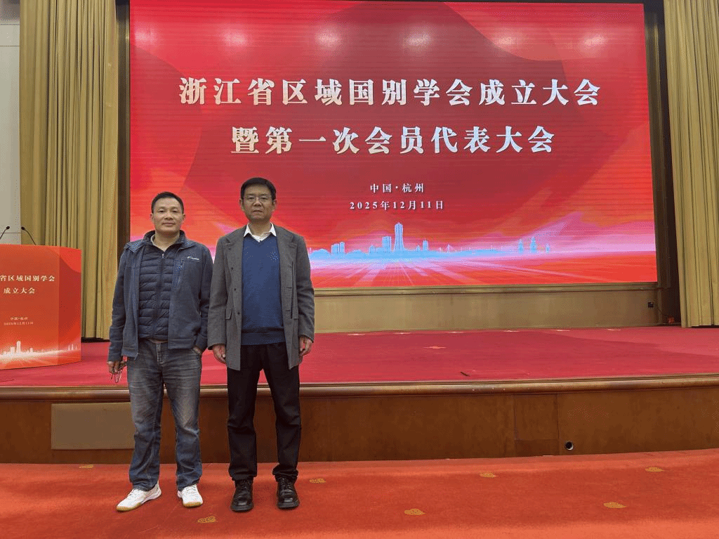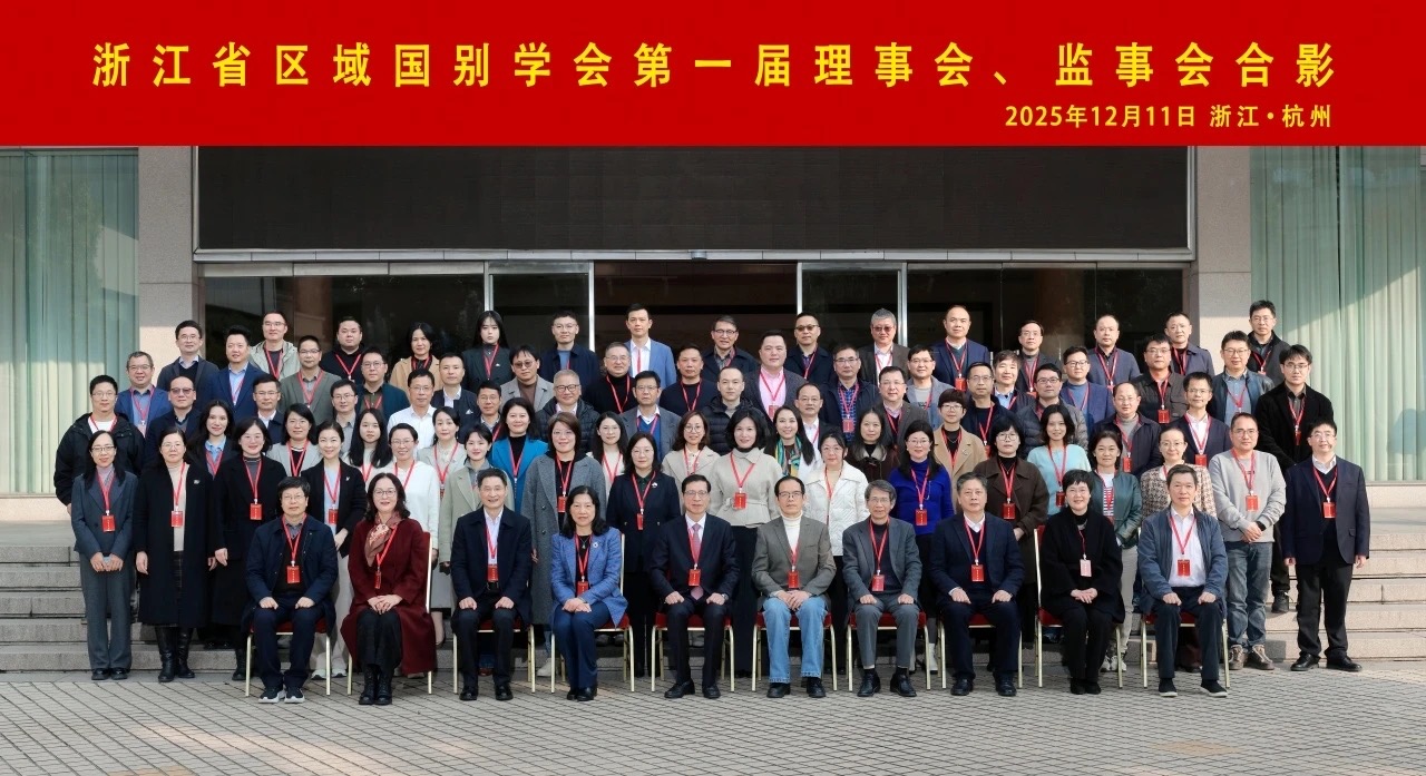 12月11日,浙江省区域国别学会成立大会暨第一次会员代表大会在杭州之江饭店顺利举行。该学会由浙江大学、浙江工业大学、浙江师范大学、宁波大学、浙江工商大学、中国计量大学、浙江财经大学、浙江科技大学、浙江外国语学院等九所高校共同发起成立。大会汇聚了浙江省内50余所高校的160余位嘉宾、专家学者及相关领导,共同见证我省区域国别研究迈入组织化、协同化发展的新阶段。外国语学院院长王刚教授和吴澜老师应邀出席成立大会。