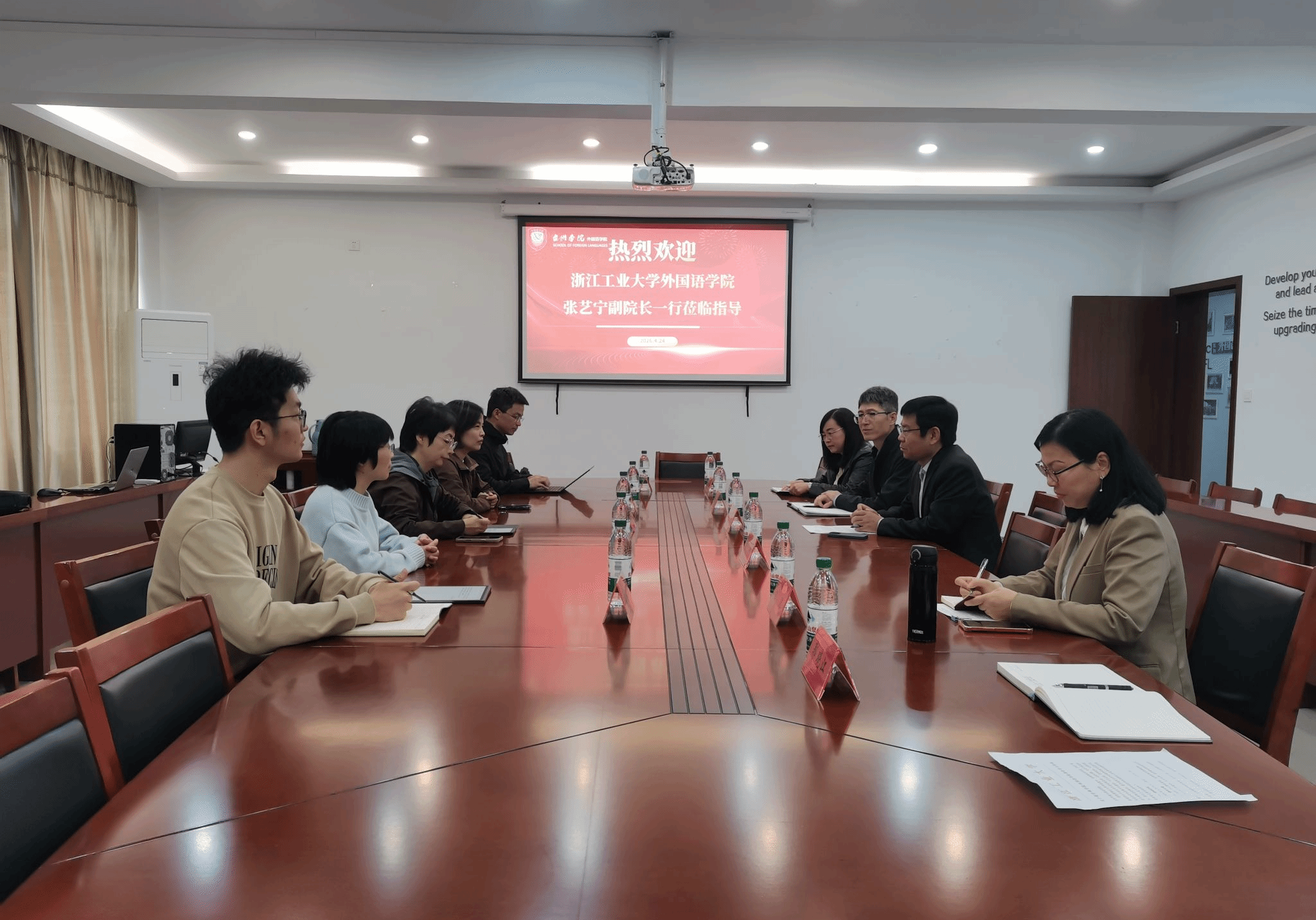 4月24日上午,浙江工业大学外国语学院副院长张艺宁率队来我院,就大学外语机考及iTEST智能测评云平台应用开展调研交流。外国语学院院长王刚、副院长崔瑞国、大外部主任汪琴、教务办主任郭晓江和大外部副主任曲洪等出席了此次交流会。