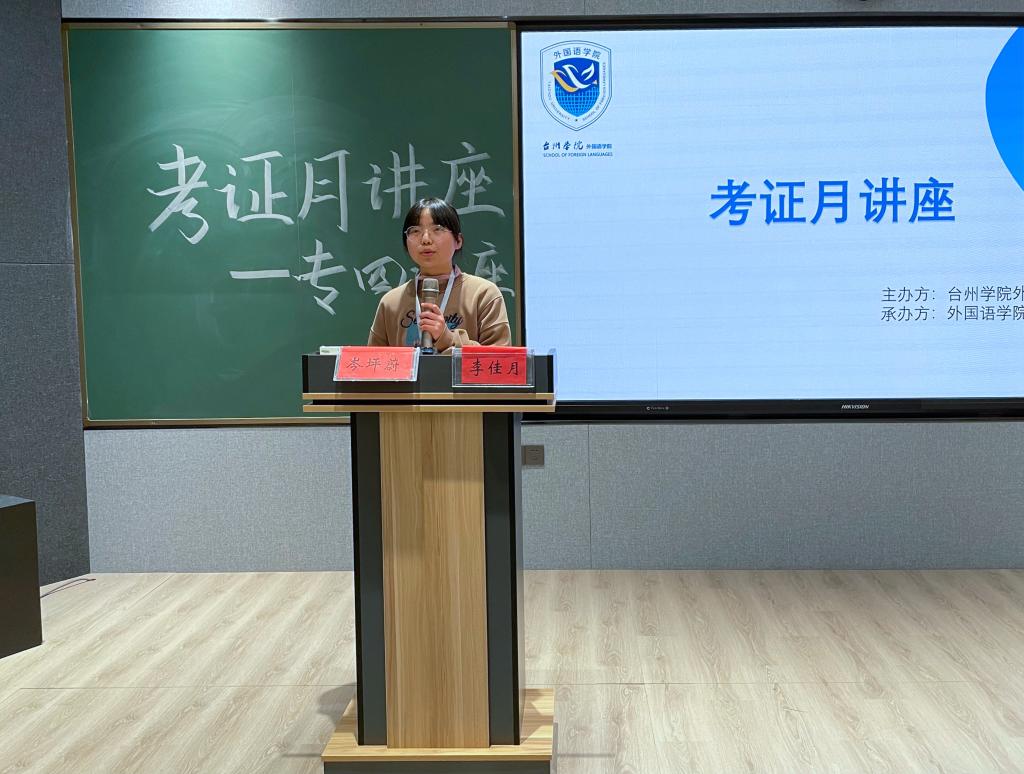 为了让同学们对专四考试有更全面的了解,并且掌握高效的学习方法,从而科学备考,自信应考。外国语学院于12月14日晚在A6教室举办英语专业四级备考讲座。本次讲座由外国语学院学生会承办,由李佳月主持,岑坪蔚同学和范欣怡同学受邀分享专四考试经验,这两名同学均在专四考试中取得优秀成绩。