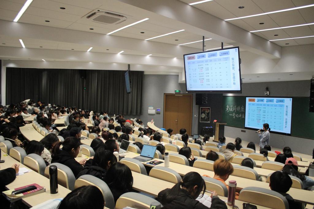 讲座伊始,岑坪蔚从听力、语法、阅读、写作四个方面入手,向大家分享了自己的经验和备考计划,让同学们对专四考试有了更进一步的了解。她还告诉同学们在备考的过程中一定要放平心态、定好目标、自信备考。