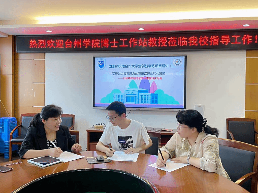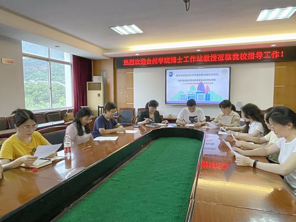 6月22日下午,台州学院“基于融合教育理念的英语后进生转化策略——以初中阶段阅读障碍学生转化为例”课题研究小组负责人及指导老师应邀前往临海市外国语学校参加国家级校地合作大学生创新训练项目研讨活动。