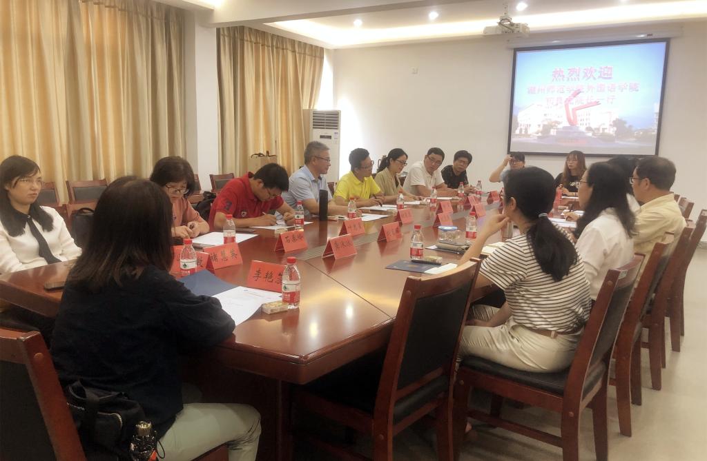 6月22日下午,湖州师范学院外国语学院院长初良龙带队大外部教师一行12人,来外国语学院交流大学外语教学改革工作。外国语学院院长刘宏照、副院长刘富丽等出席交流会。
