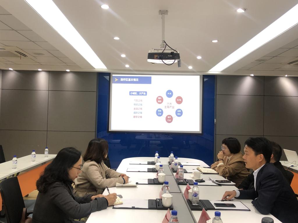 在电商产业园会议室,马青田书记介绍了路桥区的基本情况,指出当地利用区位优势,打造集汽车、商贸、金融、循环、数字经济为一体,成为对台州市发展既有“辨识度”又有“贡献度”的活力之城。接下来区商务局将以“一个目标”、“两大平台”、“四个融合”为引领,推进三大重点项目,完善三大服务体系,着手“百千万”人才引育计划,弥补人才紧缺短板,为经济发展注入新动力。