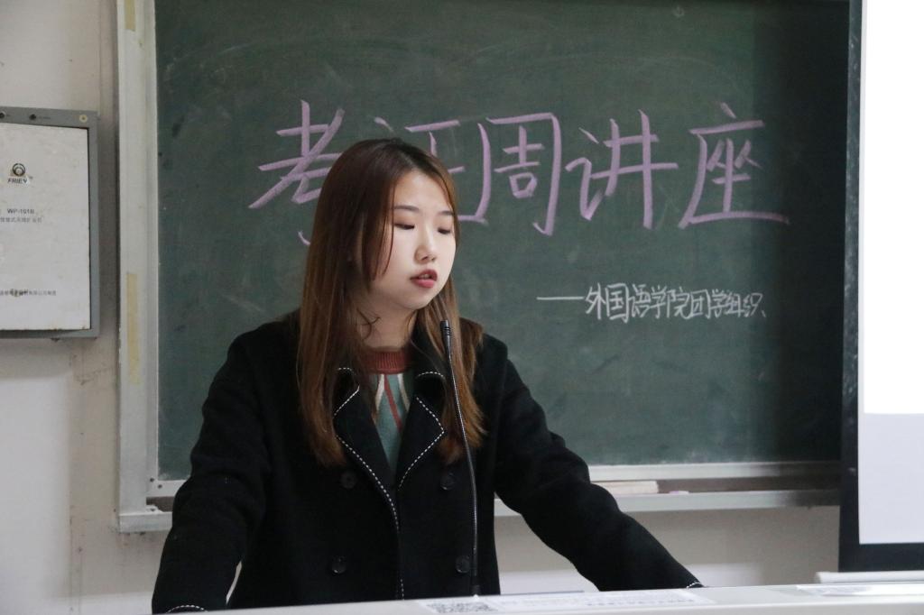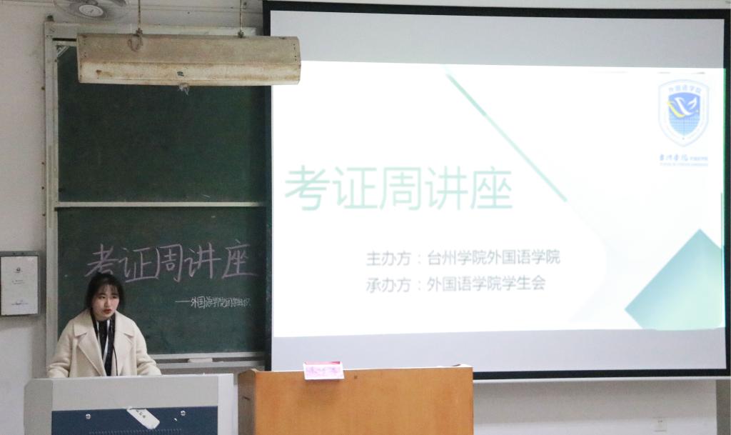 为增进同学们对英语专业四级考试的了解,帮助同学们更合理地规划大学生活,11月27日晚,台州学院外国语学院在A1教室举办英语专业四级证书讲座。本次讲座是外国语学院“考证周讲座”系列活动之一,由学院学生会承办,17级英语教育专业学生朱娉逸主讲。