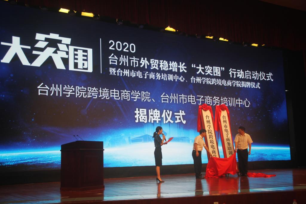 9月7日上午,在椒江校区校大礼堂举行了跨境电商学院揭牌仪式。校长陈光亭、台州市商务局局长陈肖力致辞,共同为台州市电子商务培训中心、台州学院跨境电商学院揭牌,并签订合作协议;我院刘宏照院长、刘富丽副院长出席了本次活动。