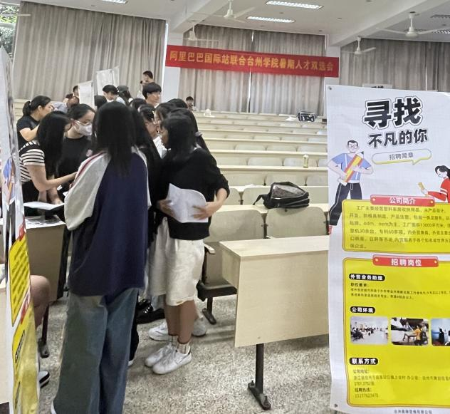 双选会共吸引了双马塑业、临海市亚翔进出口有限公司、台州奈科特出口有限公司等17家企业参会,提供岗位近50个,涵盖外贸业务助理、外贸跟单助理、运营助理、跨境直播助理等岗位;五十余位商务英语和英语专业的学生参加了双选会。