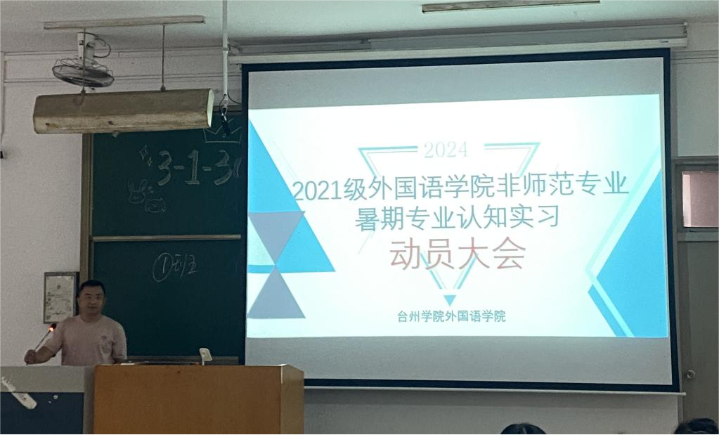 为深化同学们对暑期实践学习任务的理解,外国语学院于6月20日中午,于临海校区分年级举行暑期专业认知实习动员大会,会议分别由党委委员崔瑞国、英语系主任刘常民、副主任钱虹主持,大一大二大三非师范各班同学及指导老师参会。