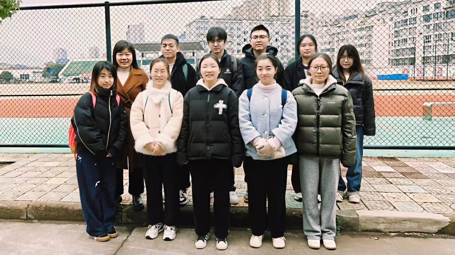 带队老师王欣超与天台实验中学实习学生合影
