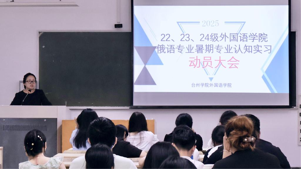 6月12日中午,外国语学院于临海校区1210教室召开俄语专业暑期认知实习动员大会。本次会议由俄语系主任贾慧敏博士主持,2022、2023、2024级俄语专业学生参加。