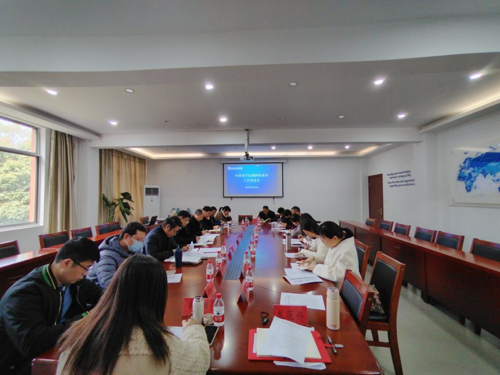3 月 21 日下午,外国语学院 2024 届就业工作会议在 4102 会议室举行。会议由院党委书记李涛主持,院领导班子、系部主任、毕业班班主任及年级辅导员出席。